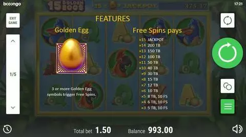 15 Golden Eggs is a 5 rouleaux / 15 lignes slot game, released by Booongo in in Décembre 2017