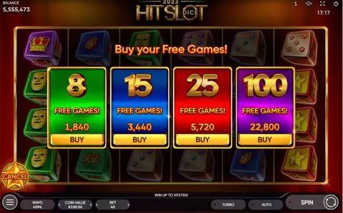 2023 Hit Slot Dice is a 6 rouleaux / 4096 lignes slot game, released by Endorphina in in Décembre 2023