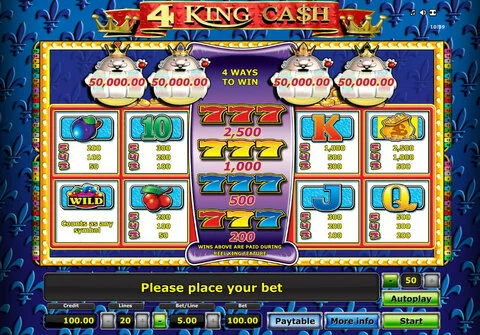4 King Ca$h is a 5 rouleaux / 20 lignes slot game, released by Novomatic in n/a n/a