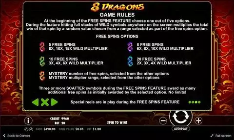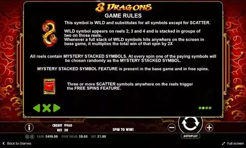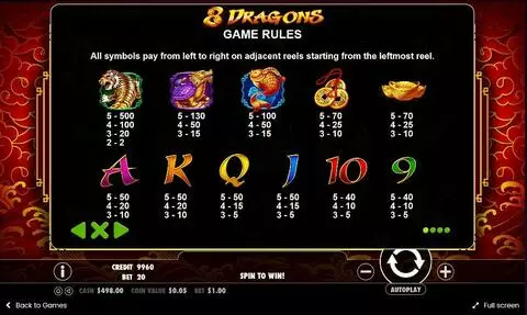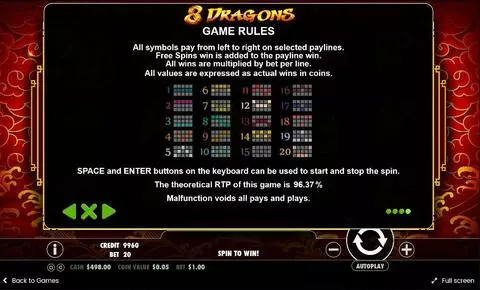 8 Dragons is a 5 rouleaux / 20 lignes slot game, released by Pragmatic Play in in Mai 2017