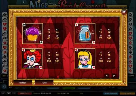 Alice and the Red Queen is a 5 rouleaux / 25 lignes slot game, released by 1x2 Gaming in n/a n/a