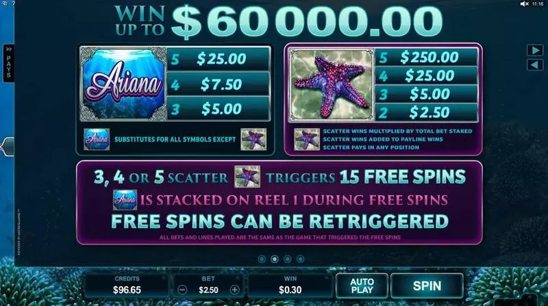 Ariana is a 5 rouleaux / 25 lignes slot game, released by Microgaming in in Mai 2015