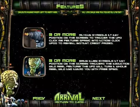 Arrival is a 5 rouleaux / 30 lignes slot game, released by BetSoft in n/a n/a
