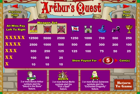 Arthur's Quest is a 5 rouleaux / 9 lignes slot game, released by Amaya in n/a n/a