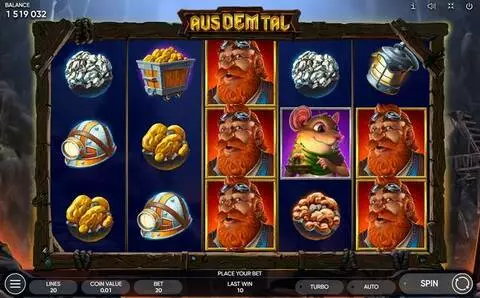 Aus Dem Ta is a 5 rouleaux / 20 lignes slot game, released by Endorphina in in Février 2020