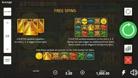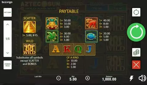 Aztec Sun is a 5 rouleaux / 25 lignes slot game, released by Booongo in in Juin 2020