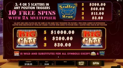 Big Chef is a 5 rouleaux / 15 lignes slot game, released by Microgaming in in Mai 2015