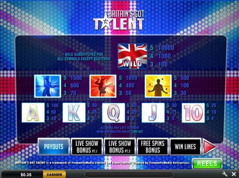 Britain's Got Talent is a 5 rouleaux / 20 lignes slot game, released by Ash Gaming in n/a n/a