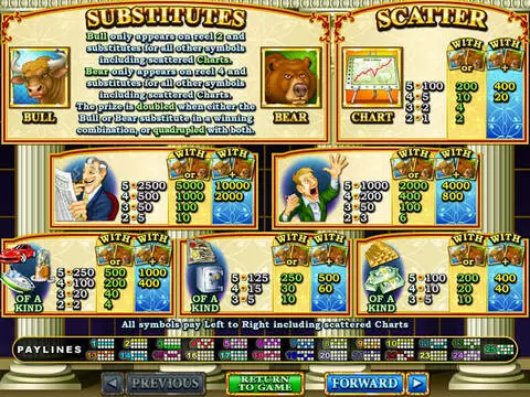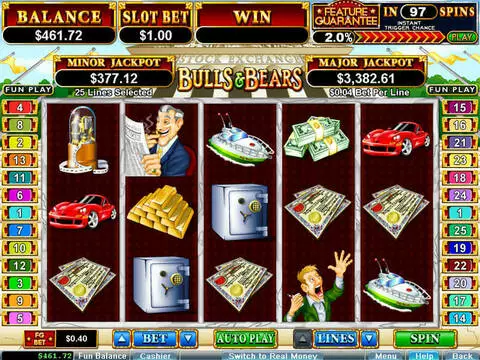 Bulls and Bears is a 5 rouleaux / 25 lignes slot game, released by RTG in in Avril 2012