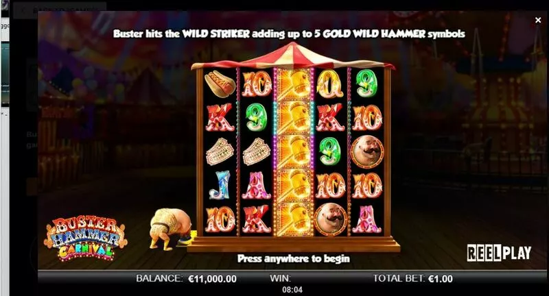 Buster Hammer Carnival is a 5 rouleaux / 3125 lignes 32768 Ways slot game, released by ReelPlay in in Mars 2021