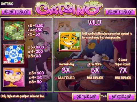 Catsino is a 5 rouleaux / 50 lignes slot game, released by Rival in in Mai 2016