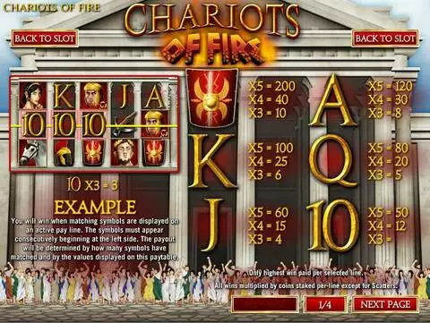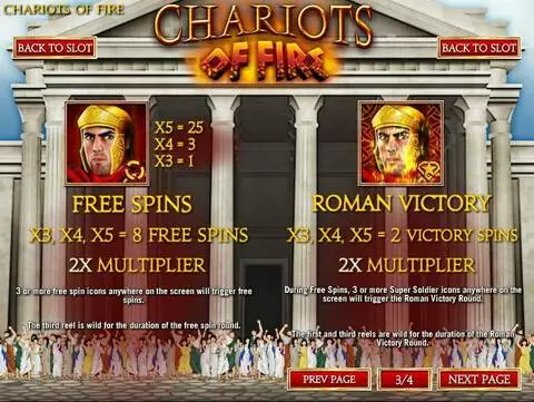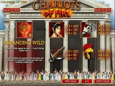 Chariots of Fire is a 5 rouleaux / 25 lignes slot game, released by Rival in in Mai 2017