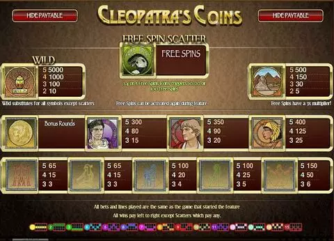 Cleopatra's Coin is a 5 rouleaux / 15 lignes slot game, released by Rival in in Novembre 2006