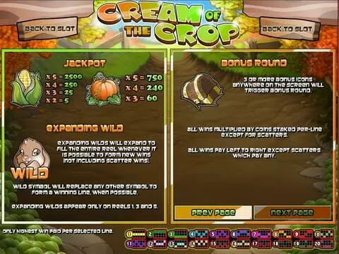 Cream of the Crop is a 5 rouleaux / 20 lignes slot game, released by Rival in in Octobre 2010