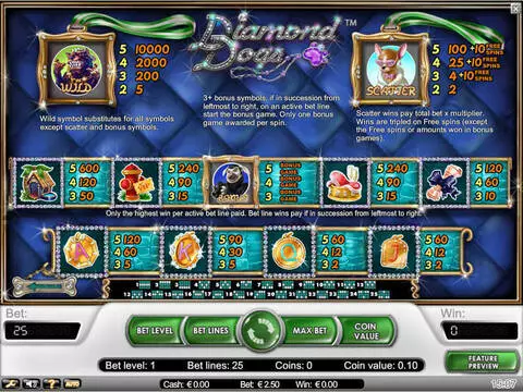 Diamond Dogs is a 5 rouleaux / 25 lignes slot game, released by NetEnt in n/a n/a