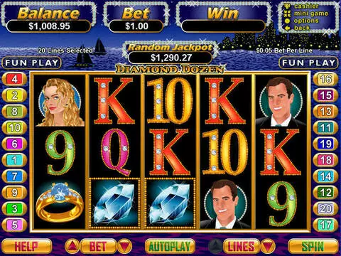 Diamond Dozen is a 5 rouleaux / 20 lignes slot game, released by RTG in in Juin 2005