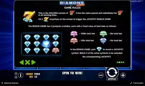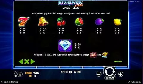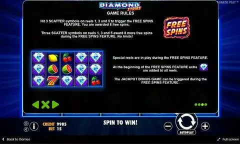 Diamond Strike is a 3 rouleaux / 15 lignes slot game, released by Pragmatic Play in in Septembre 2017