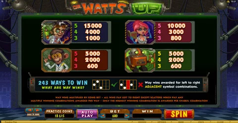 Dr. Watts Up is a 5 rouleaux / 248 lignes slot game, released by Microgaming in n/a n/a