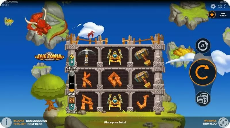 Epic Tower is a 3 rouleaux 33 Reel / 5 lignes 95 Line slot game, released by Mancala Gaming in in Février 2024