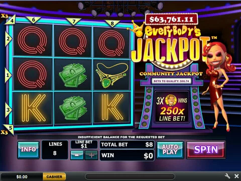 Everybody's Jackpot is a 9 rouleaux / 8 lignes slot game, released by PlayTech in n/a n/a