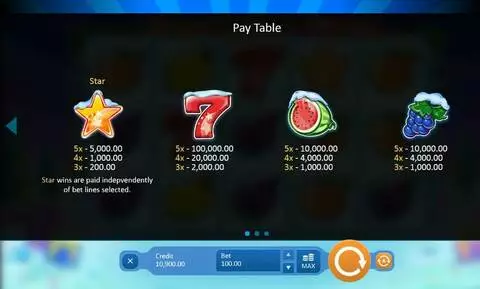 Fruits'N'Stars Holiday Edition is a 5 rouleaux / 5 lignes slot game, released by Playson in in Décembre 2017