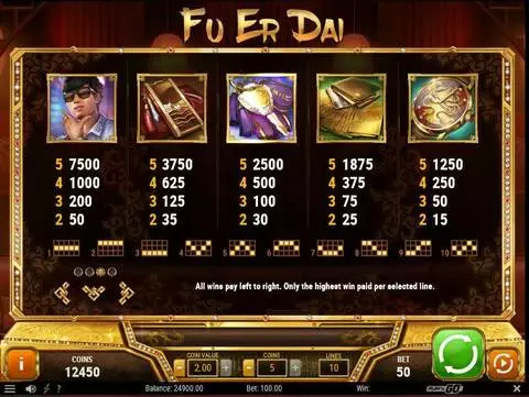 Fu Er Dai is a 5 rouleaux / 10 lignes slot game, released by Play'n GO in in Novembre 2017