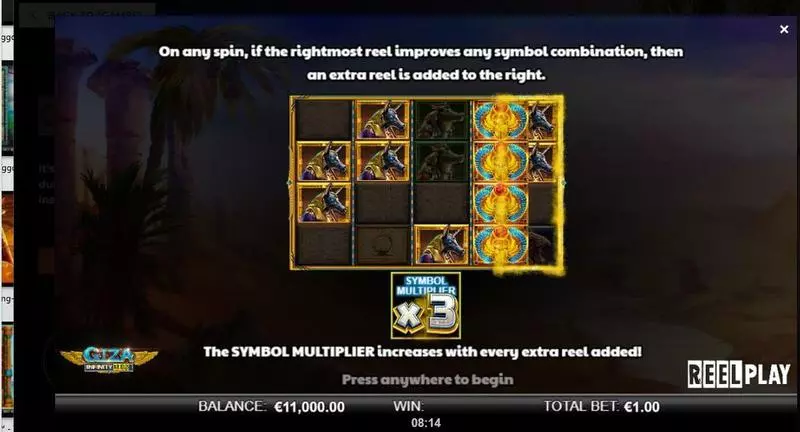 Giza Infinity Reels is a 3 rouleaux / Infinity slot game, released by ReelPlay in in Février 2021