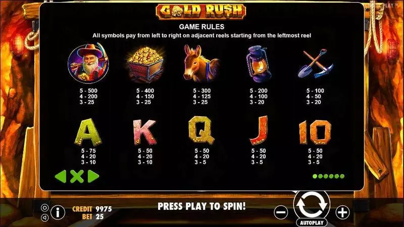 Gold Rush is a 5 rouleaux / 25 lignes slot game, released by Pragmatic Play in in Décembre 2017