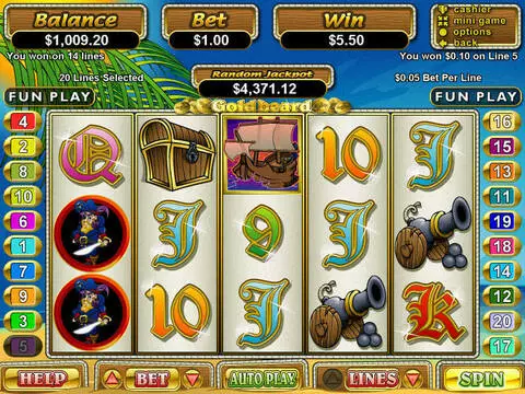 Goldbeard is a 5 rouleaux / 20 lignes slot game, released by RTG in in Mars 2005