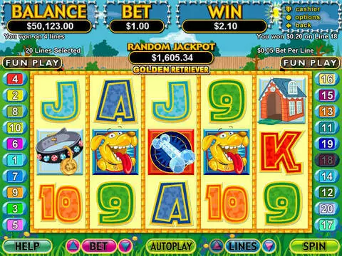 Golden Retriever is a 5 rouleaux / 20 lignes slot game, released by RTG in in Août 2008