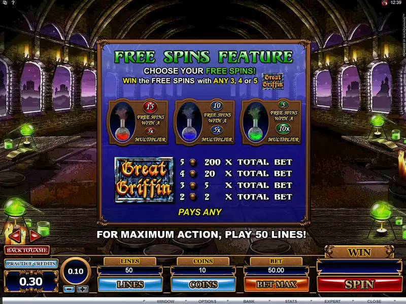 Great Griffin is a 5 rouleaux / 50 lignes slot game, released by Microgaming in n/a n/a