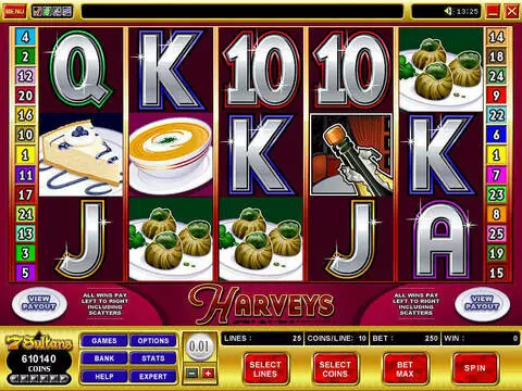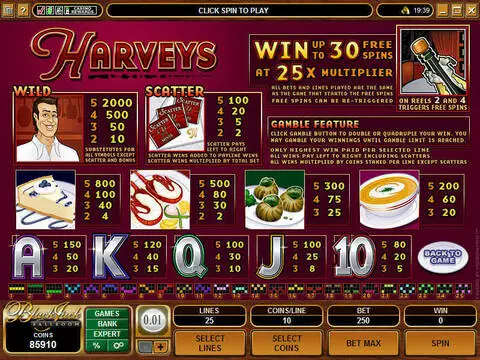 Harveys is a 5 rouleaux / 25 lignes slot game, released by Microgaming in n/a n/a