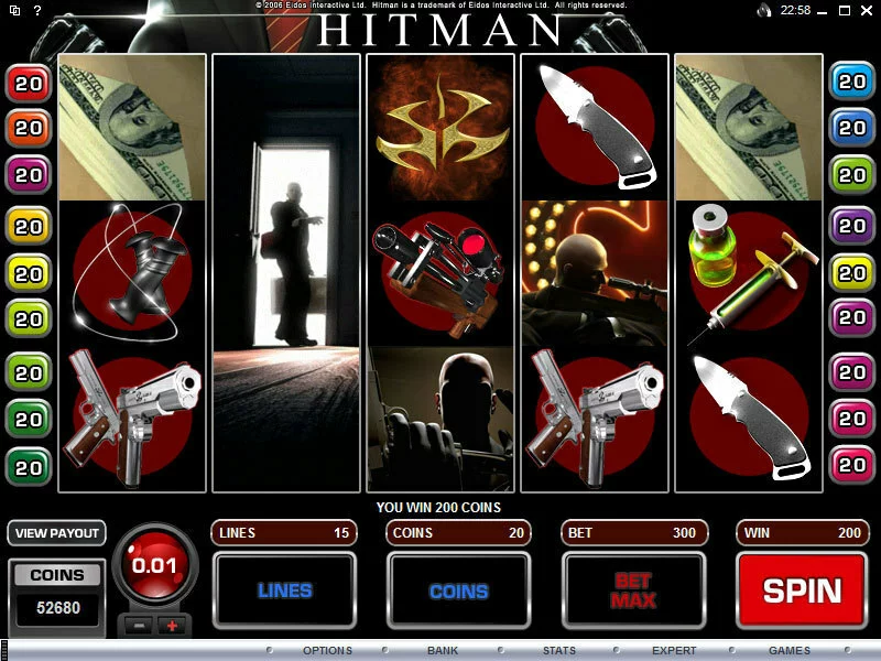 Hitman is a 5 rouleaux / 15 lignes slot game, released by Microgaming in n/a n/a