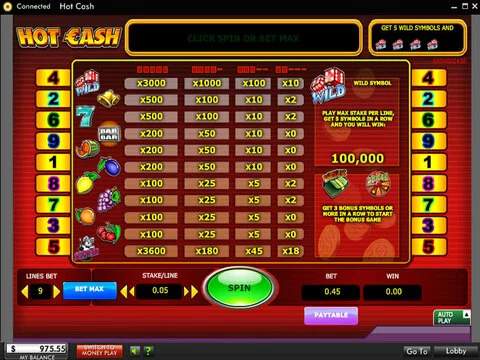 Hot Cash is a 5 rouleaux / 9 lignes slot game, released by GTECH in n/a n/a