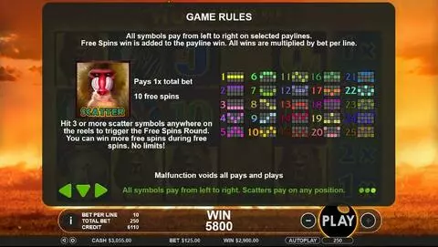 Hot Safari is a 6 rouleaux / 25 lignes slot game, released by Topgame in in Avril 2016