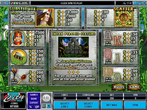 Inca Gold is a 5 rouleaux / 20 lignes slot game, released by Microgaming in n/a n/a