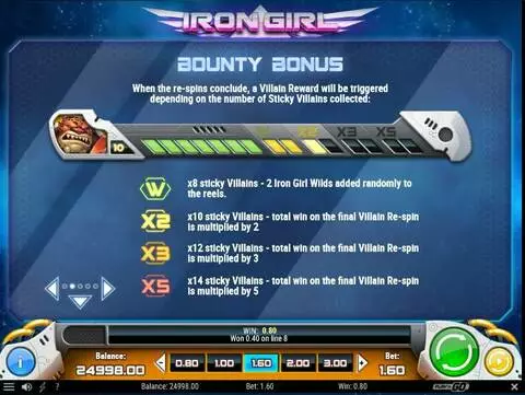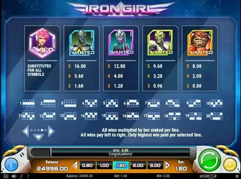 Iron Girl is a 5 rouleaux / 20 lignes slot game, released by Play'n GO in in Octobre 2018