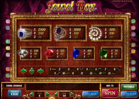 Jewel Box is a 5 rouleaux / 15 lignes slot game, released by Play'n GO in n/a n/a