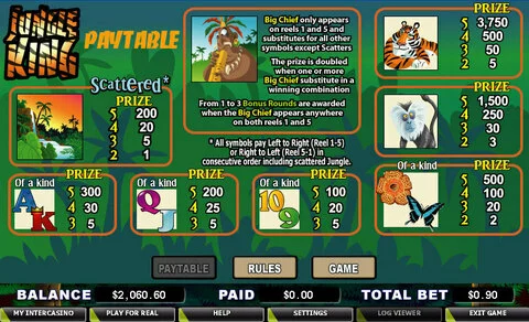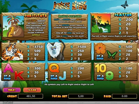 Jungle King is a 5 rouleaux / 25 lignes slot game, released by WGS Technology in in Mai 2009