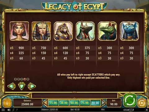 Legacy of Egypt is a 5 rouleaux / 30 lignes slot game, released by Play'n GO in in Mai 2018