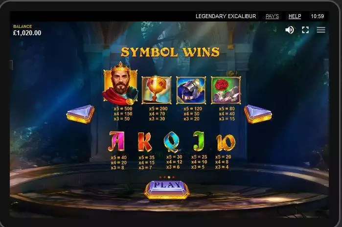 Legendary Excalibur is a 5 rouleaux / 10 lignes slot game, released by Red Tiger Gaming in in Novembre 2019