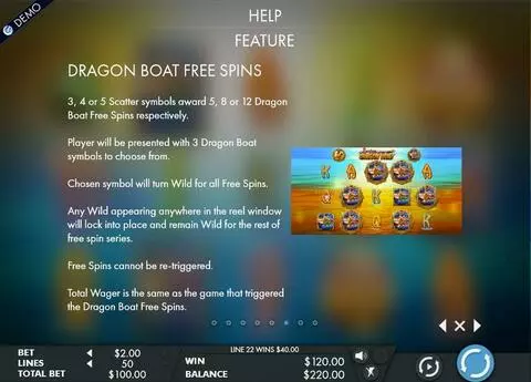 Lucky Dragon Boat is a 5 rouleaux / 50 lignes slot game, released by Genesis in in Mars 2017