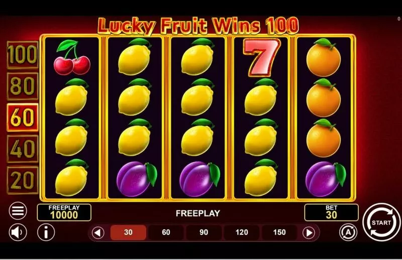 LUCKY FRUIT WINS 100 is a 5 rouleaux / 20 lignes 100 lignes slot game, released by 1Spin4Win in in Mai 2024
