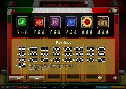Mamma Mia is a 5 rouleaux / 30 lignes slot game, released by BetSoft in n/a n/a