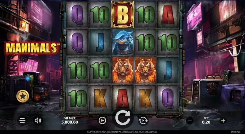Manimals is a 5 rouleaux / 1024 lignes 32768 Ways slot game, released by StakeLogic in in Février 2024