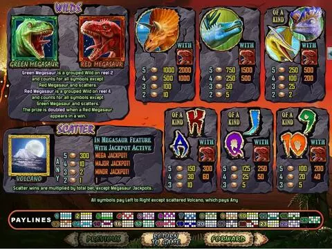 Megasaur is a 5 rouleaux / 25 lignes slot game, released by RTG in in Août 2014
