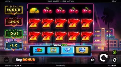 Miami Sunset 7s Hold and Win is a 5 rouleaux / 10 lignes slot game, released by Kalamba Games in in Avril 2024