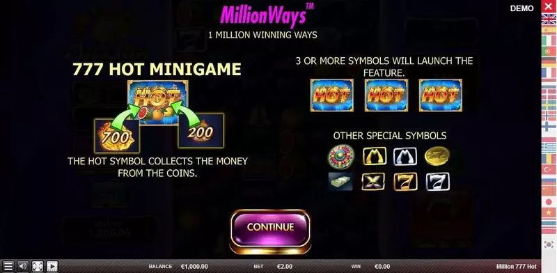 Million 777 Hot is a 6 rouleaux / 1000000 Way slot game, released by Red Rake Gaming in in Novembre 2023