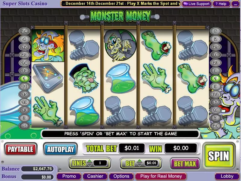 Monster Money is a 5 rouleaux / 25 lignes slot game, released by WGS Technology in in Mai 2009