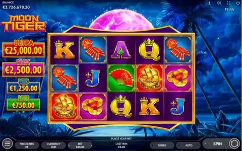 Moon Tiger is a 5 rouleaux / 25 lignes slot game, released by Endorphina in in Avril 2024